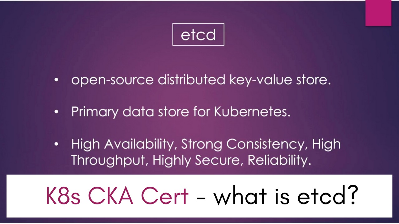 Uncategorized What is etcd? | Kubernetes Certification (CKA) Prep. by Aravind September 5, 2021 written by Aravind September 5, 2021 Kubernetes Certification 0 comment 0 FacebookTwitterPinterestEmail Aravind previous post Kubernetes Controllers EXPLAINED in 5 mins next post What is kubelet? You may also like Switching from DBA to DevOps career? 3 Mental... October 9, 2024 Kubernetes commands and arguments – Explained | Kubernetes... August 20, 2022 Advanced Linux Commands For Beginners June 14, 2022 How to navigate a career change | Mindset... April 11, 2022 Golang tutorial – Golang interface tutorial February 27, 2022 Golang Contexts | Golang Tutorial For Beginners February 12, 2022 A Beginner’s Guide to Golang Channels February 7, 2022 Interview with Dina – Kubernetes Admin, Entrepreneur, DB... February 4, 2022 Golang Tutorial – Structs – Introduction January 30, 2022 Kubernetes init containers January 16, 2022